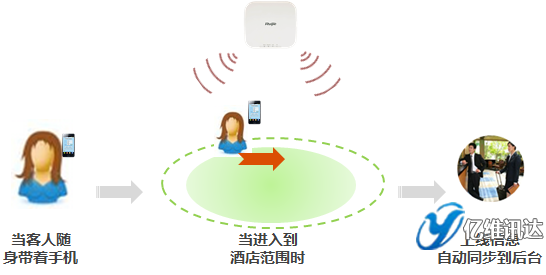 銳捷認(rèn)證系統(tǒng)提供標(biāo)準(zhǔn)的接口,可以將客人的上線信息自動(dòng)同步到酒店的后臺(tái),后臺(tái)可通知門(mén)童、前臺(tái)、大堂經(jīng)理,某某客人來(lái)了。