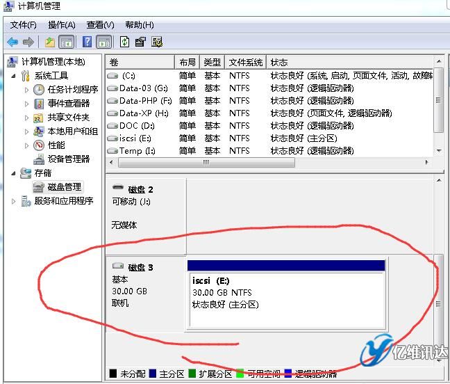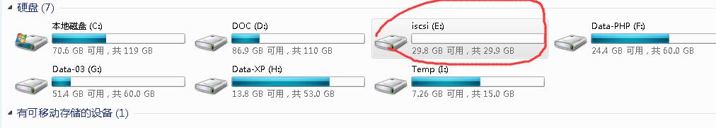 然后,在客戶端(以windows 7為例),看一下,如何連接ISCSI,請?jiān)L問《windows server 2008R2部署ISCSI》。